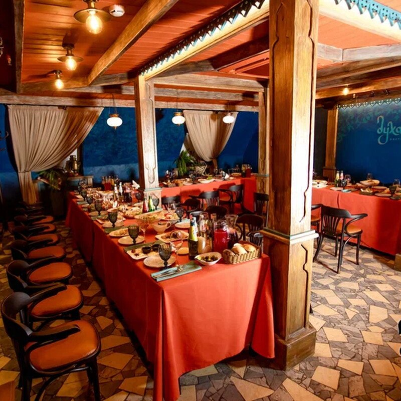 Наш ресторан обладает потрясающим панорамным видом! Он славится не только своей кухней и напитками - мы порадуем вас дизайном внутри и вокруг. Если вы цените красоту вокруг, приходите в наш ресторан. Если за окном стоит тёплая погода, гораздо приятнее находиться в открытом пространстве. И не только чтобы прогуляться, но и пообедать или поужинать. Специально для таких случаев у ресторана грузинской кухни Духанъ имеется веранда с выходом на улицу.